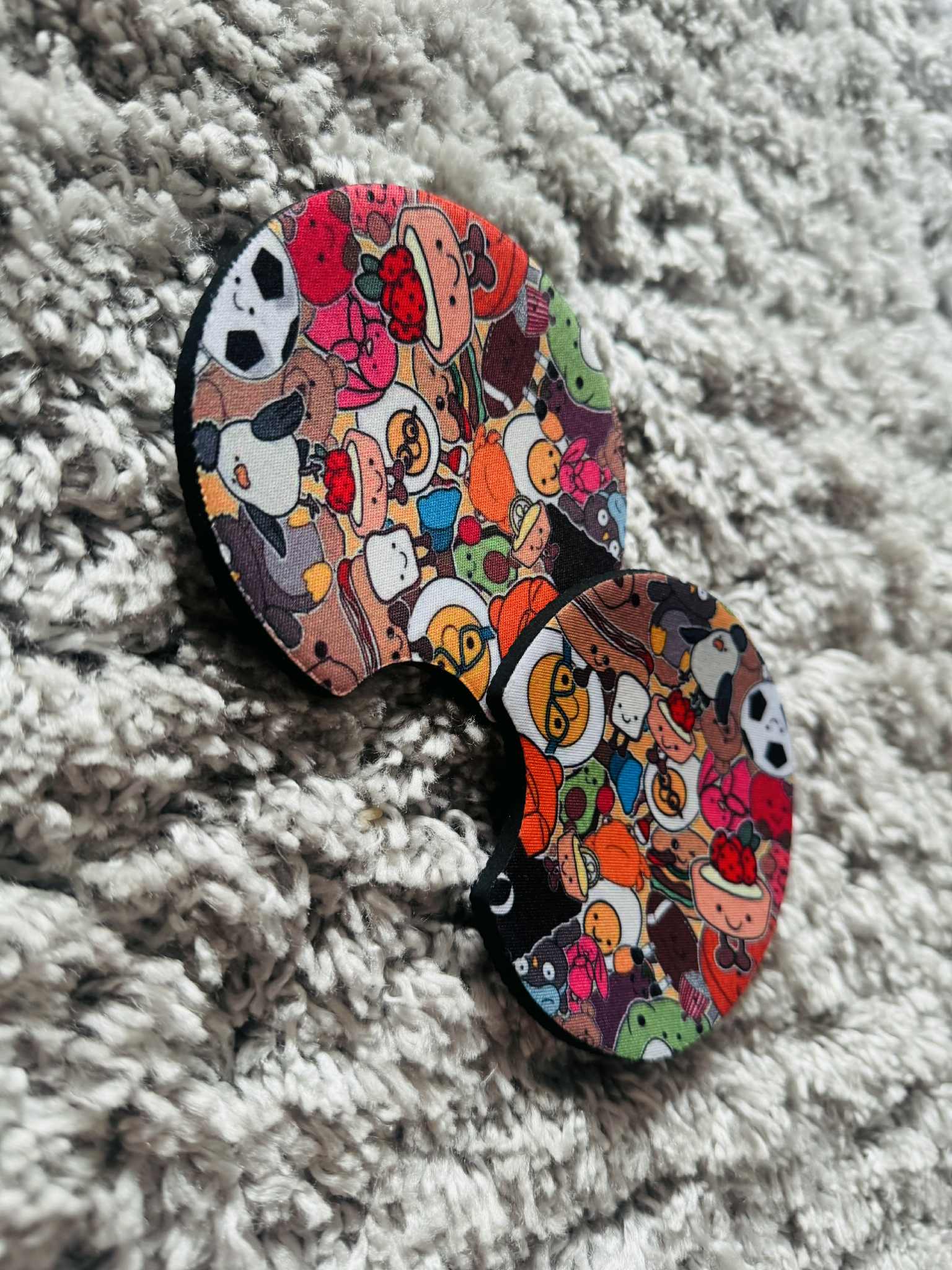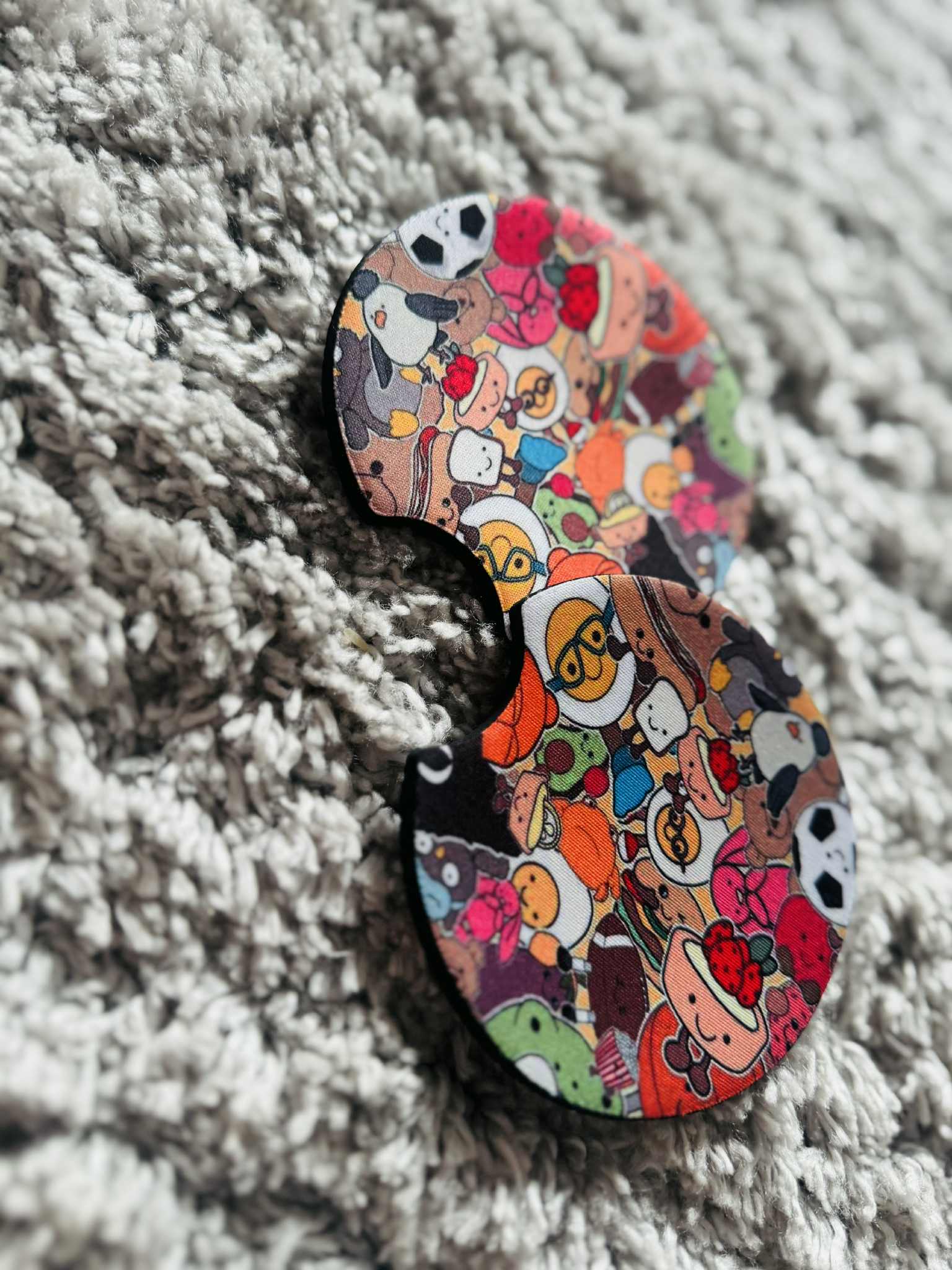 THESE FOAM PRINTED CAR COASTERS WHICH COME WITH THIS JELLY CAT DESIGN SET OF 2