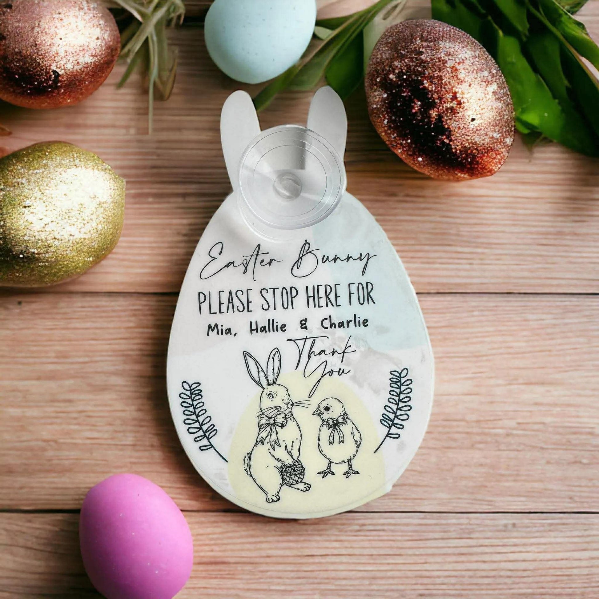 These bunny shaped Easter bunny treat plate which come with this super cute design and personalised with your child/rens names at the bottom